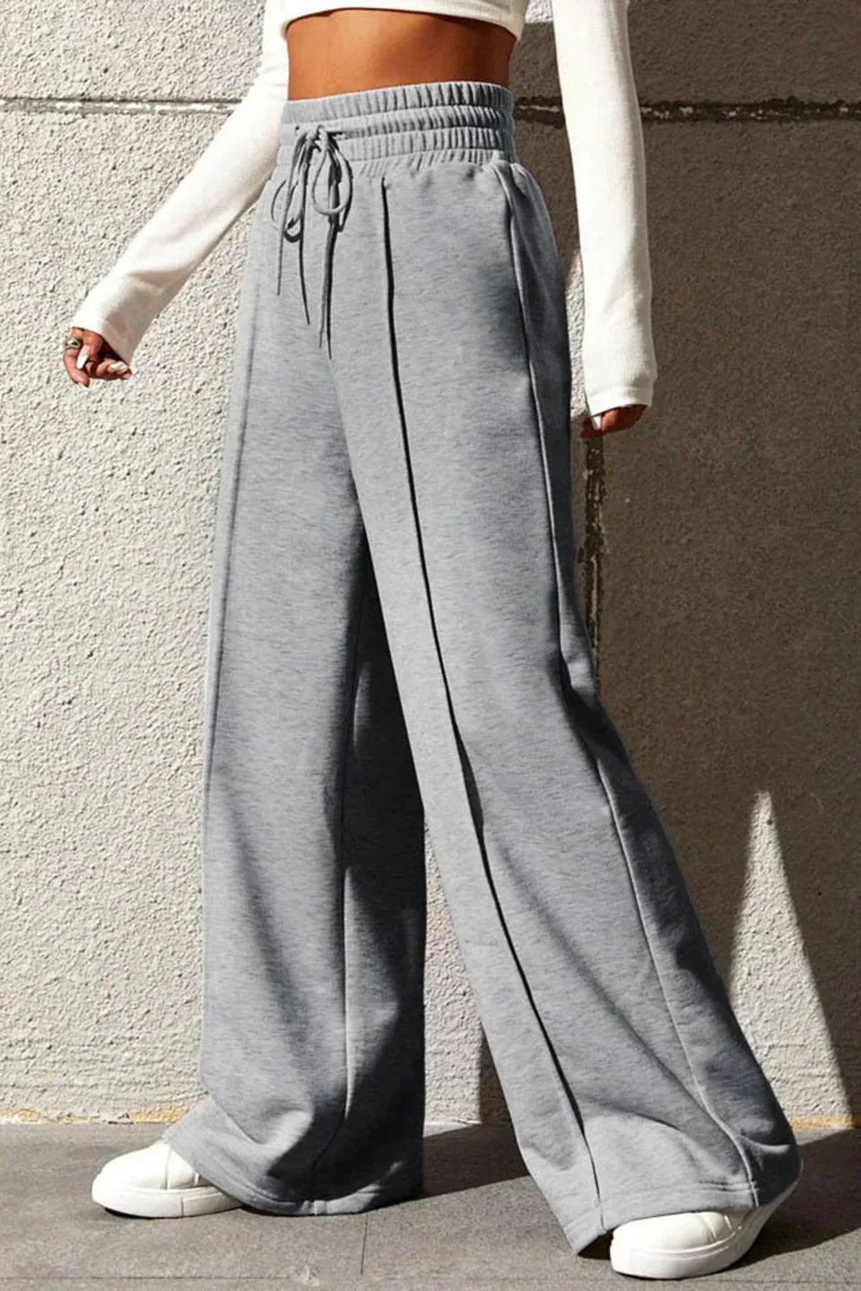 • Style: High-waisted with drawstring and wide-leg silhouette