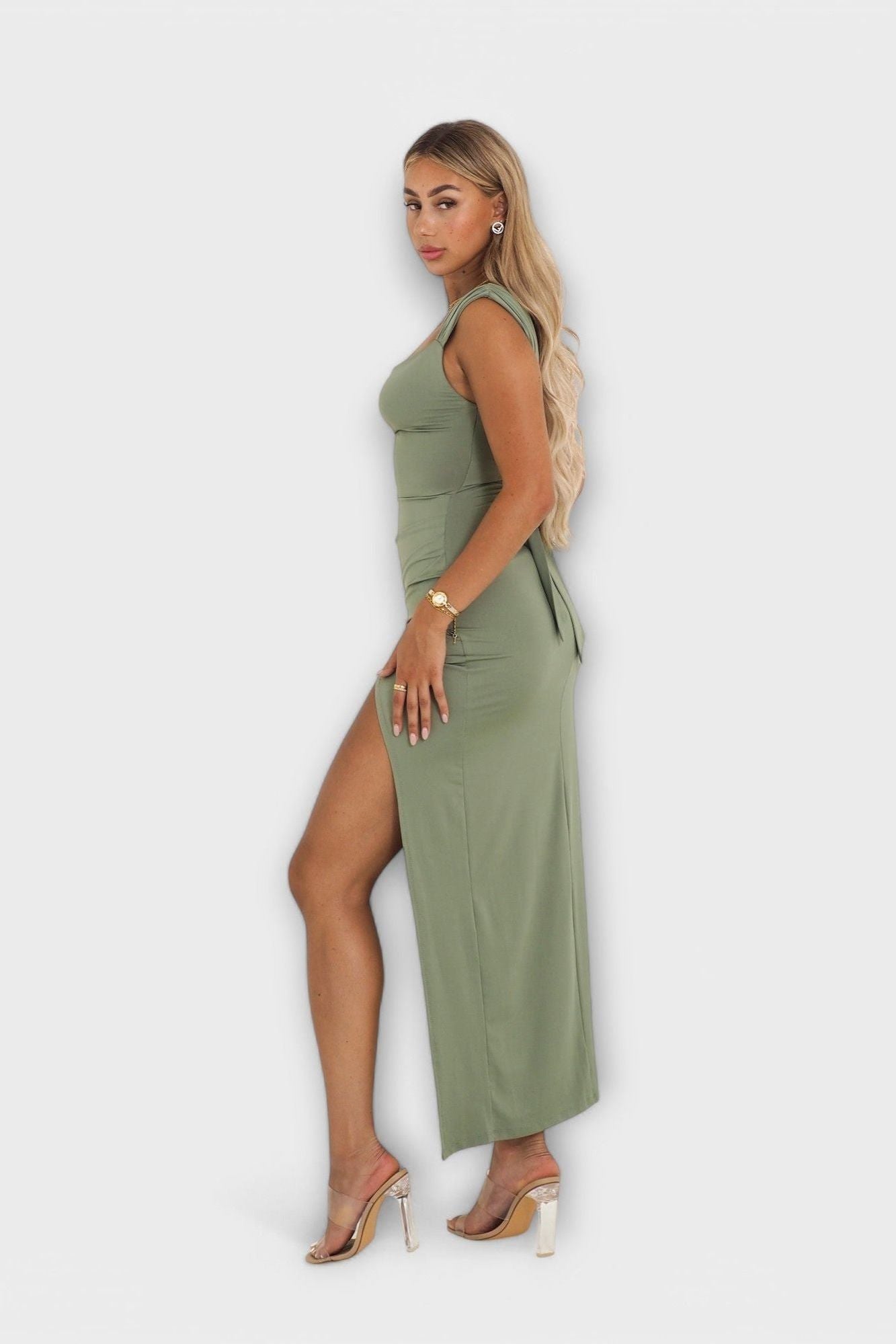 The Classy Dress is a modern take on timeless sophistication. Designed to flatter and empower, this sleek silhouette is perfect for elegant dinners, rooftop events, or city nights out. With its clean lines, open back, and high leg slit, the dress makes a confident statement without overcomplicating the look. The square neckline and fitted bodice highlight the waist, while the side slit adds just the right amount of allure. It’s minimalist, yet impactful—crafted for those who appreciate effortless elegance.