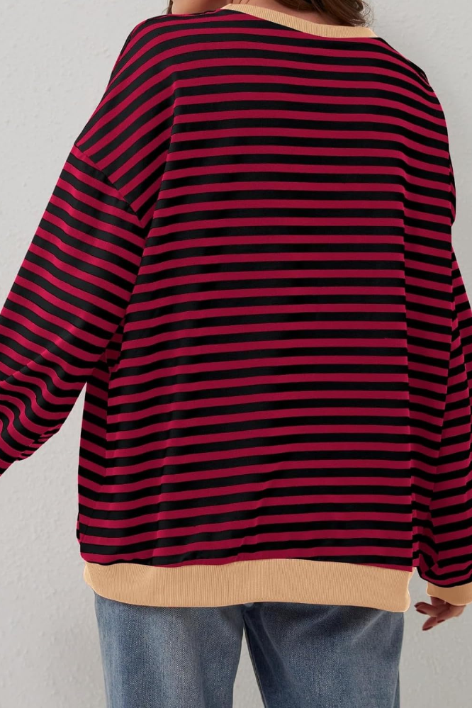 Step into easy elegance with this oversized striped jumper. Designed with long sleeves and a roomy fit, it flows naturally for a flattering, relaxed look. Subtle horizontal stripes and clean edges create a modern finish that makes everyday dressing both comfortable and stylish.