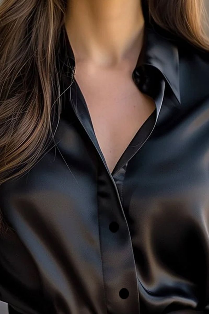 The Elegant Satin Long Sleeves Blouse is your answer to timeless sophistication with a bold, modern edge. Designed in a range of rich jewel tones and deep neutrals, it features a classic button-down silhouette with a silky sheen that catches the light just right. Perfect for both formal and after-hours settings, this blouse combines tailored polish with fluid elegance. Whether you choose sleek black, wine red, royal blue, or statement shades like purple or crimson, it adds instant refinement to any look.