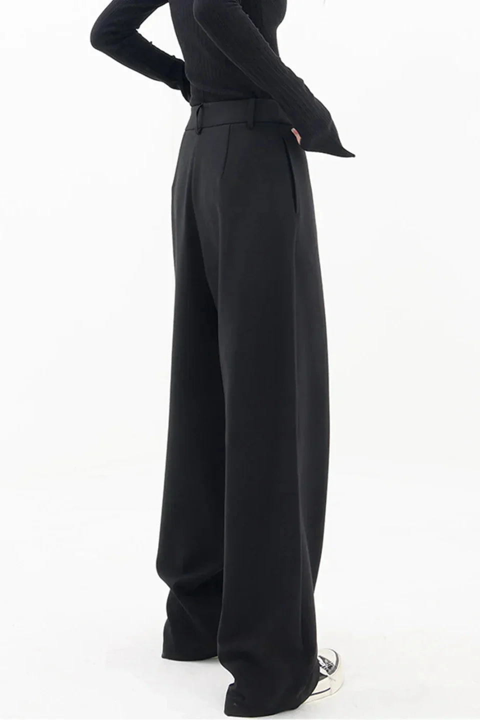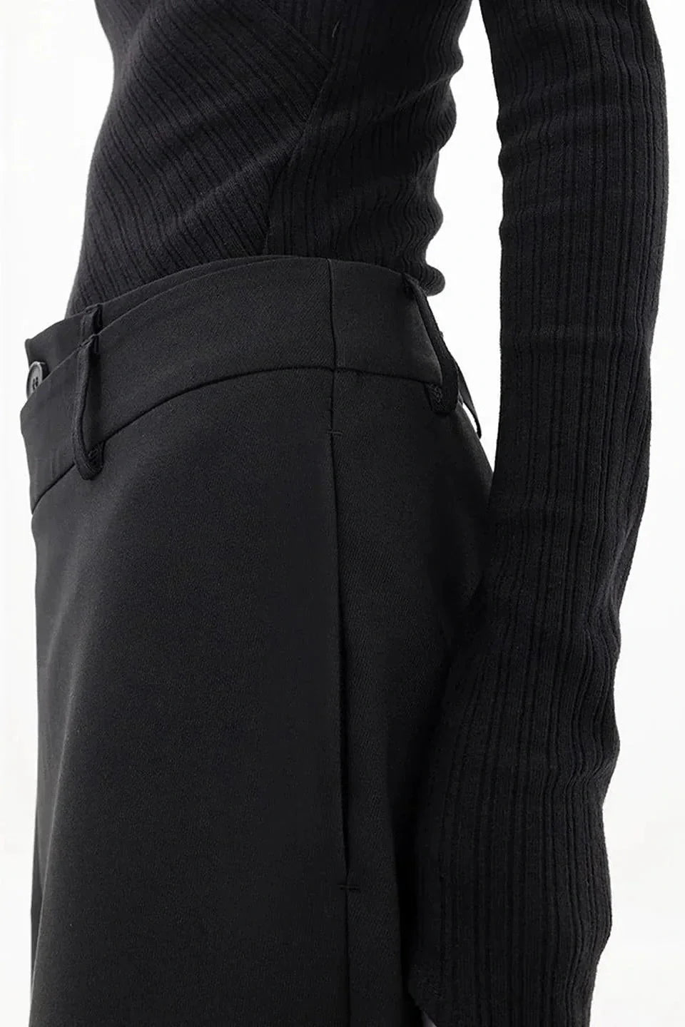 • Style: High-waisted with asymmetric wrap front and wide-leg silhouette