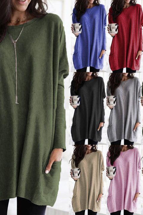 Step into relaxed elegance with this oversized round neck jumper, designed for ease and movement. With its flowing fit and subtle pocket detail, this piece brings functionality and flair to your everyday wardrobe. A clean neckline and versatile cut make it the ideal layer for casual comfort.