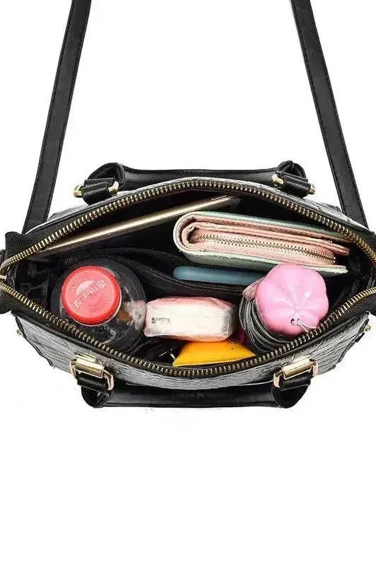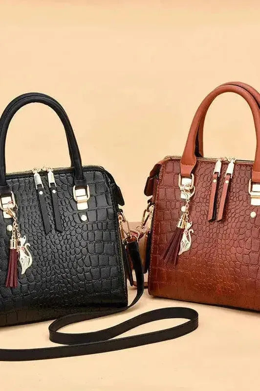 This handbag features a softly structured silhouette with a refined crocodile-embossed finish that adds subtle depth and polish. Lightweight and easy to carry, the single shoulder strap ensures a natural fit, while the roomy interior keeps essentials neatly in place. A simple way to add texture and style to your daily routine.