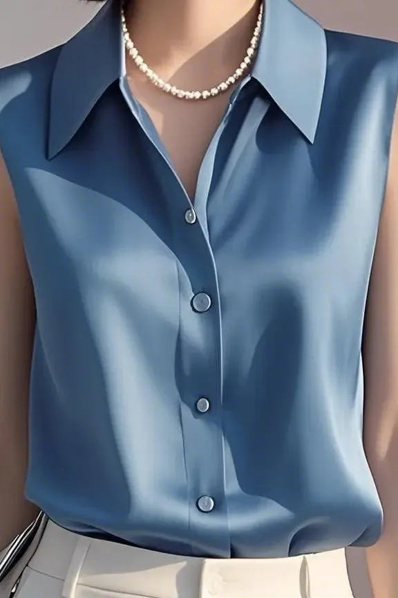 The Satin Summer Blouse is your go-to piece for warm-weather elegance. Sleeveless and silky smooth, this blouse brings effortless polish to sunny days, whether you're at the office or on a weekend getaway. The subtle sheen and clean tailoring add a refined touch to any look, while its breathable, lightweight feel keeps things cool and comfortable. Available in a range of soft neutrals and statement shades, this blouse offers endless styling versatility. Wear it tucked into trousers for a crisp finish or pair it with flowing skirts for a softer silhouette. It’s timeless, easy, and endlessly chic.