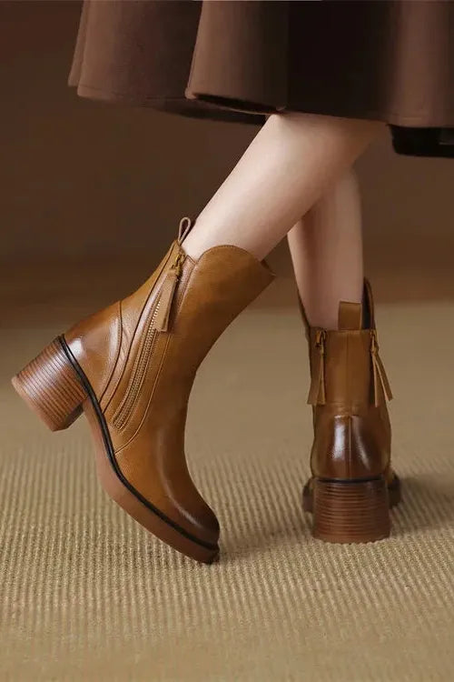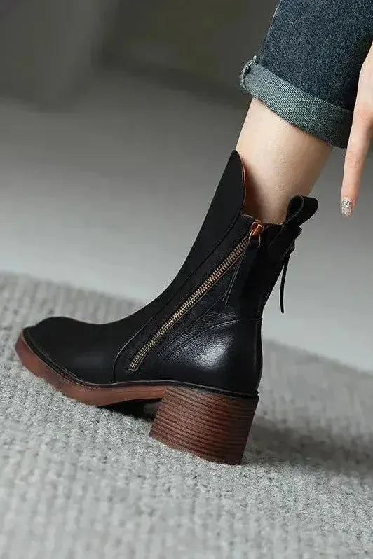 These sculpted leather boots feature a sleek, ankle-high design with smooth contours and refined structure that flatter your natural silhouette. Built for comfort and confidence, they offer a supportive fit and lightweight flexibility that moves with you. Perfect for work or weekend wear, they deliver effortless elegance every step of the way.