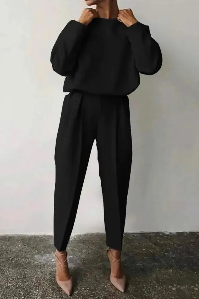 The Arlina Sculpted Luxe Set redefines effortless sophistication. With its clean-cut silhouette and structured drape, Arlina balances comfort and class in one flawless outfit. It’s perfect for days when you want to feel put-together without the fuss — whether you're heading to a meeting, a casual dinner, or just elevating your everyday routine. Featuring a softly sculpted top and tailored tapered pants, this set flatters the form while keeping you comfortable. Neutral hues make it endlessly wearable, and its understated style speaks volumes without saying a word.
