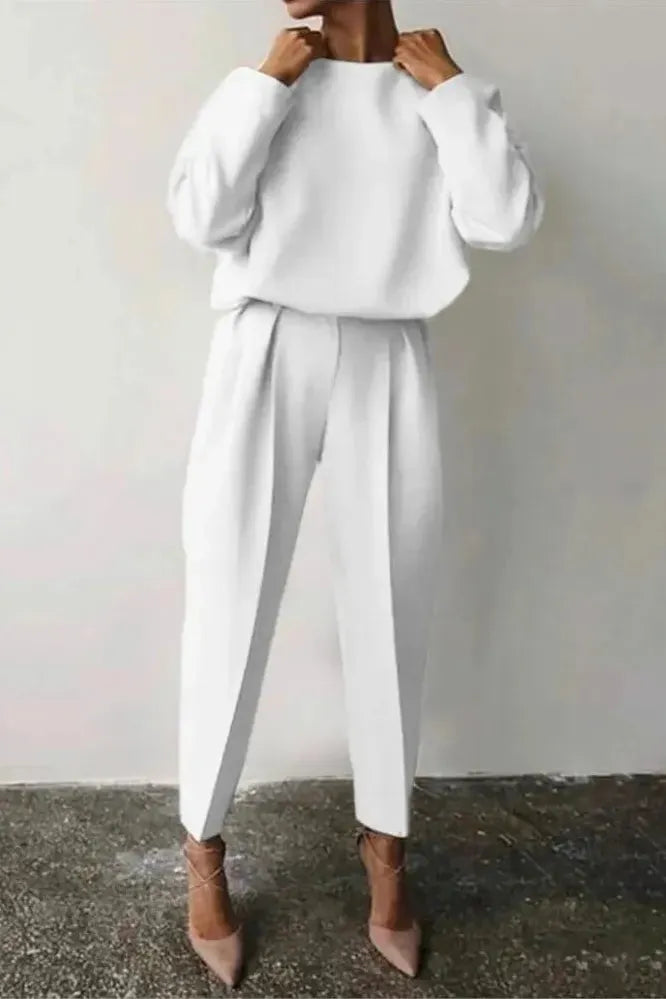 • Polished silhouette – Perfectly structured top with clean ankle-length pants