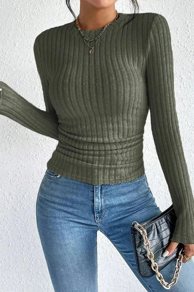 The Emery Classic Longsleeve is your everyday go-to with an elevated touch. Featuring a clean crew neckline, vertical rib texture, and a body-hugging fit, it delivers simplicity that flatters. Whether you're layering it under a coat or wearing it solo with your favorite denim, Emery always keeps it polished. Designed for day-to-night wear, this top offers soft stretch for comfort, while the slim cut enhances your natural shape. It’s the kind of staple that earns a permanent place in your rotation.