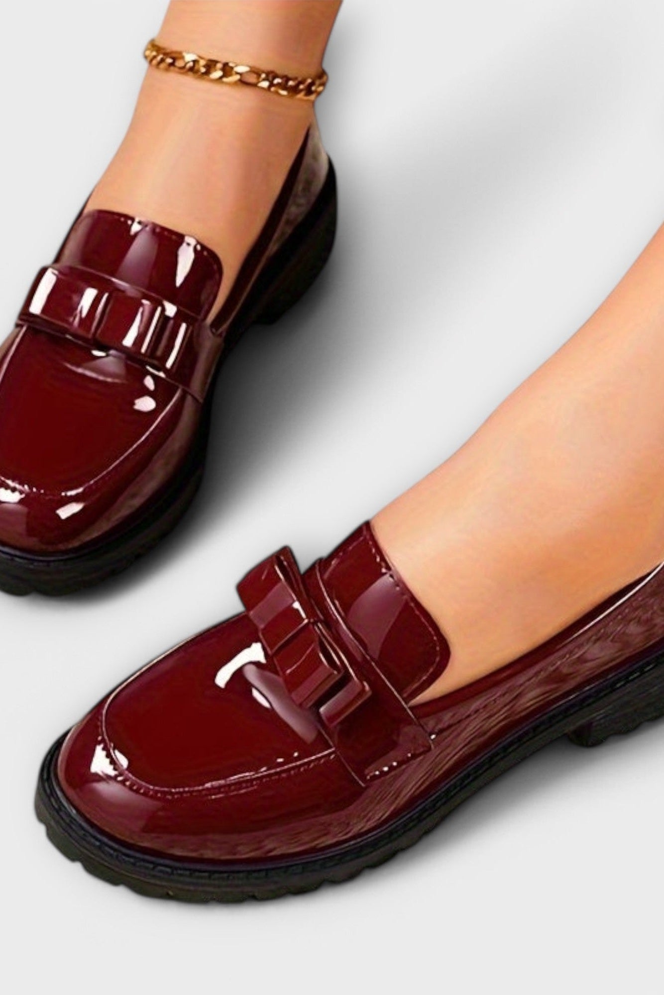 The Mimosa is not your average loafer—it’s bold, glossy, and built to turn heads. With its patent finish, chunky sole, and statement bow detail, Mimosa adds a confident edge to every outfit. Whether you're dressing up jeans or grounding a playful mini dress, it brings instant personality to your look. Slip them on for brunch, work, or a night out—they’re unapologetically stylish yet surprisingly comfortable. The Mimosa is for women who love classics with a twist and aren’t afraid to stand out.