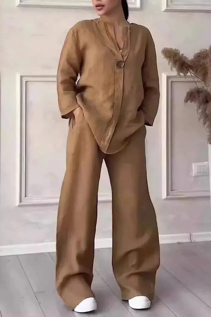 The Soreya Linen Breeze Set is the definition of laid-back elegance. Made from breathable linen-blend fabric, this lightweight two-piece is perfect for sun-drenched days, balmy evenings, or slow weekends when you want to feel fresh, flowy, and effortlessly refined. Featuring a relaxed button-down top and wide-leg pants, Soreya brings a timeless, coastal-inspired vibe that works at home, on holiday, or strolling through the market. With natural texture and soft structure, it's a warm-weather staple you’ll reach for again and again.