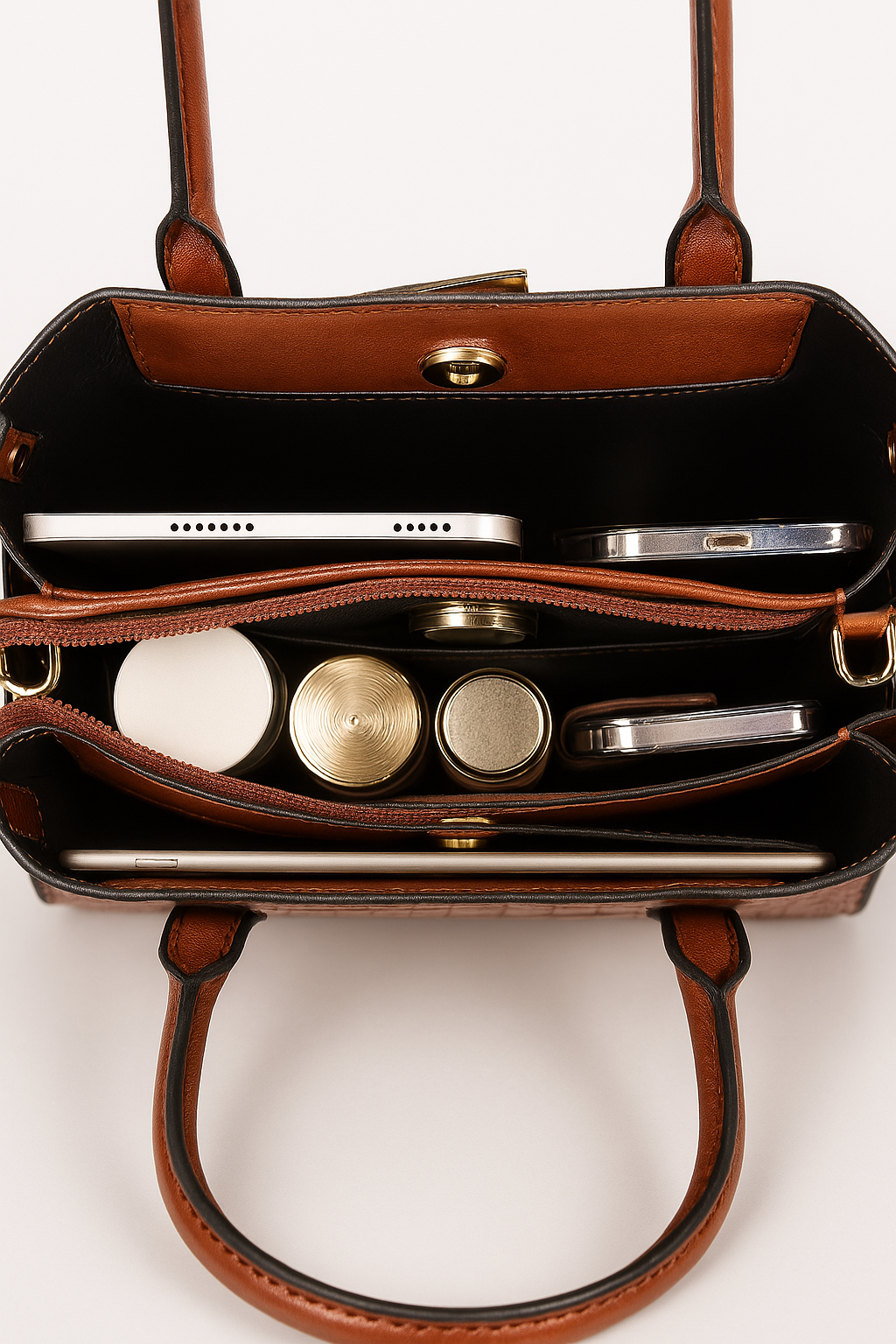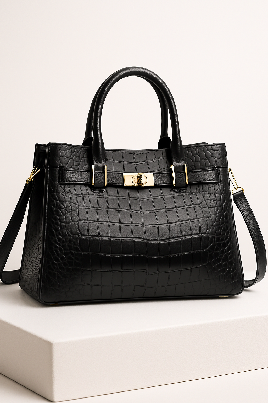Now available in a spacious 30 cm (11.81”) size, the Vivara is the perfect blend of refined style and everyday functionality. Designed for the modern woman who values sophistication, it features a sumptuously embossed crocodile texture—a cruelty-free, eco-conscious alternative that offers the allure of exotic luxury without compromise. Accented with polished gold-tone hardware, this bag is a bold yet versatile statement piece, seamlessly transitioning from workdays to evenings out.